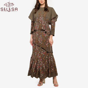 Новейшая модная онлайн-модель, Малайзия, цветочный дизайн, большие размеры, женская мусульманская одежда Jilbab Baju Kurung